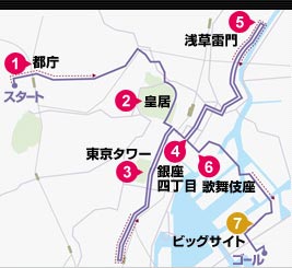 東京マラソンは、第一京浜など都内の主要幹線道路を走っています。